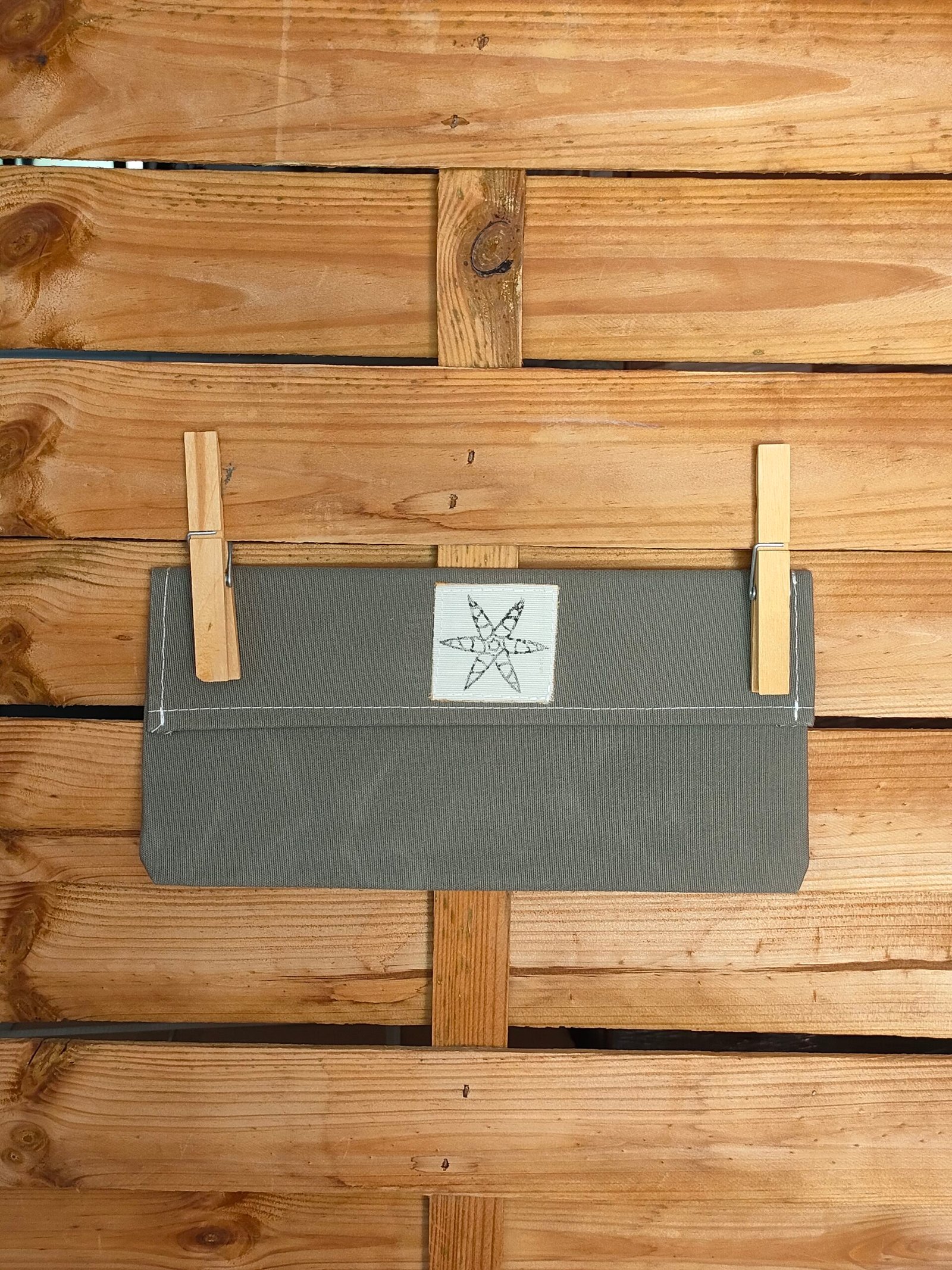 Cartera de mano Gris oscuro, lona 100% reciclada. Diseño minimalista y practico.